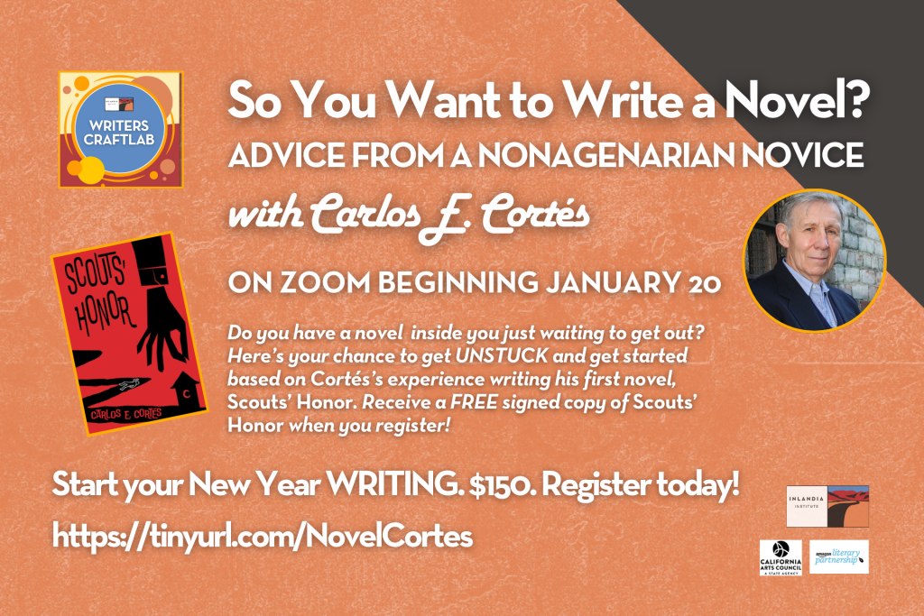 This workshop intensive consists of advice on how to get started on a novel, drawing on Cortés’s experiences writing and publishing his first novel, Scouts’ Honor, at age 91.